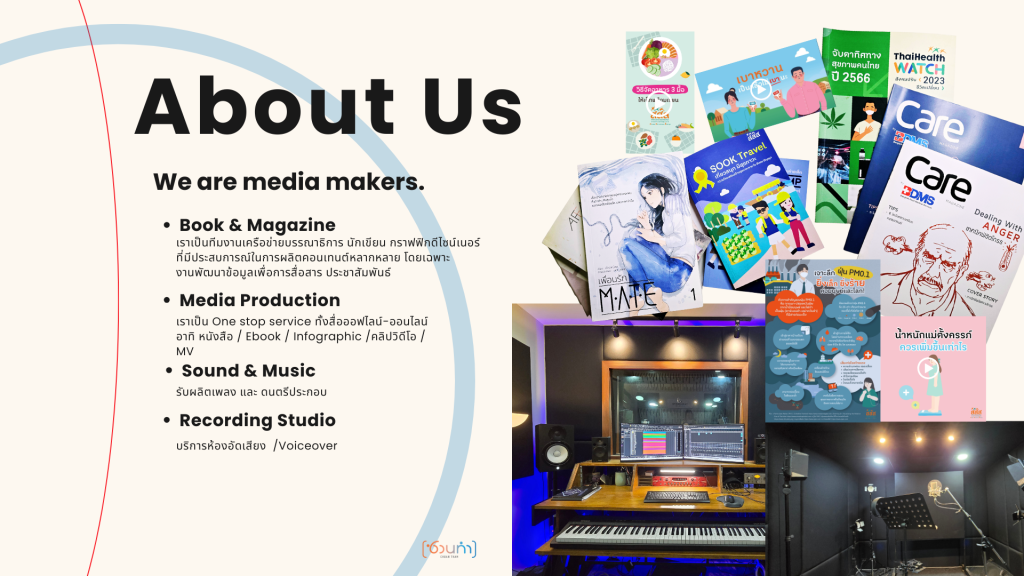 เราถนัดสร้างสรรค์คอนเทนต์ สังเคราะห์และพัฒนาข้อมูล ออกแบบสื่อเพื่อการสื่อสาร